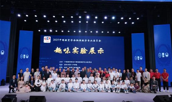 2025年中国教育学会物理教学专业委员会年会在重庆召开,作为年会的重磅环节——趣味实验展示——于9月21日周日晚盛大举行,吸引了线下数百名观众和线上数万名网友的围观。我校物理组青年教师胡名翔老师总结课堂经验,创编实验节目,受邀参与演出。