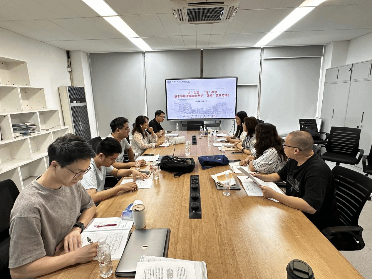 2025年10月9日上午,地理教研组2025-2026学年第一学期第4次教研活动在蘅仲楼215研讨室举行。本次教研活动邀请相关等级考命题研究专家进行“等级考命题趋势的实战方略”主题讲座,旨在通过分析等级考试卷、剖析命题规律与考查方向,帮助教师精准把握备考重点,优化教学策略。地理教研组全体老师参加活动,教研组长黄燕晔老师主持活动。
