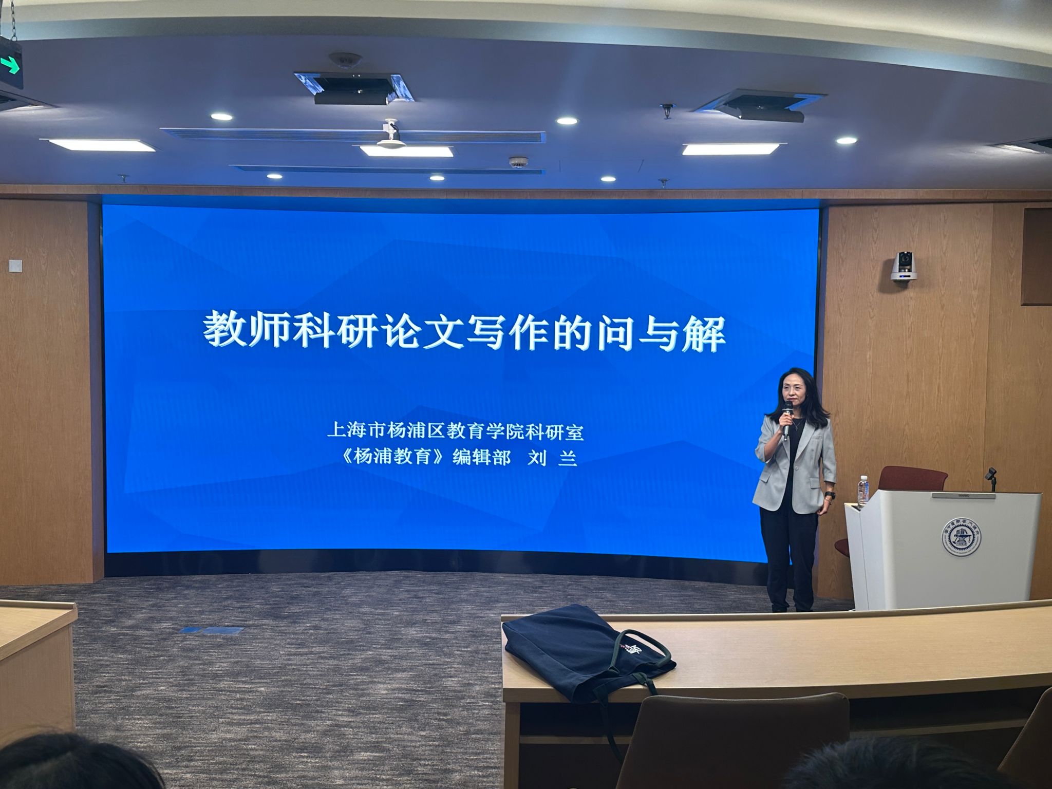 为进一步提升教师的科研素养与论文写作能力,助力见习教师专业成长,2025年11月4日,上海交通大学附属中学特邀《杨浦教育》杂志负责人刘兰老师,为见习教师及有论文发表需求的教师开展专题讲座。
