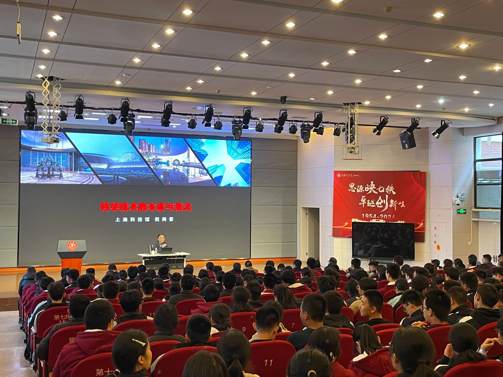为引导高一学子洞悉科学发展脉络,激发创新思维潜能,2025年11月18日,全国政协委员、上海科技馆馆长倪闽景受邀走进交大附中仰晖讲坛,以“科学的本质与范式”为题,为高一全体学生带来了一场兼具思想深度与创新启发的精彩讲座。本次讲座由高一年级组长曹东旭老师主持。