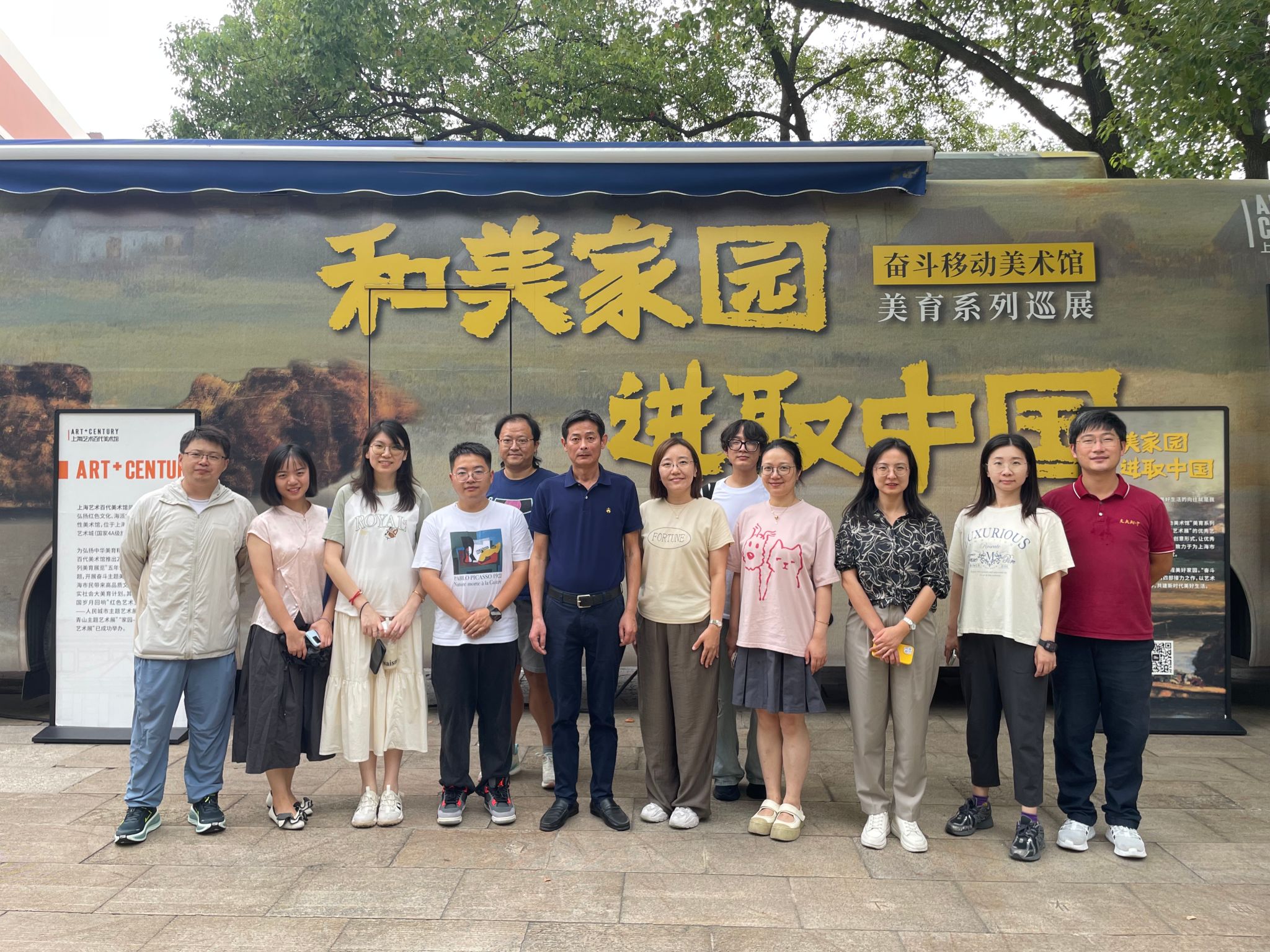 2025年10月13日中午,语文党支部组织党员利用午休时间登上移动大巴,参观“和美家园,进取中国”奋斗移动美术馆美育系列展览。