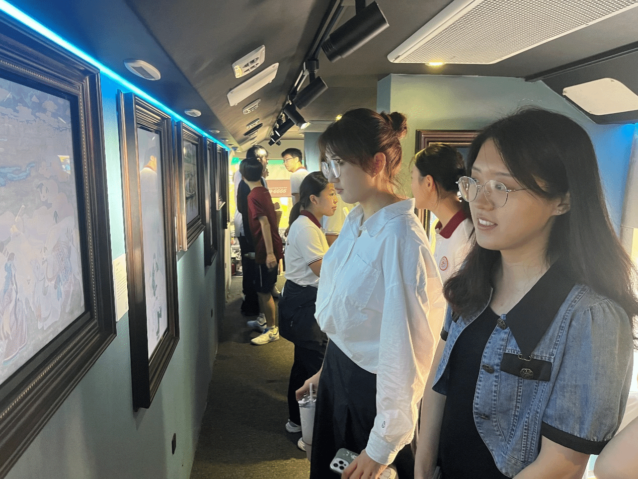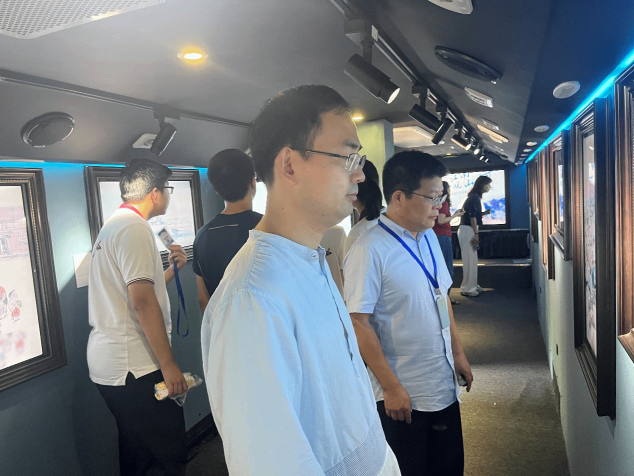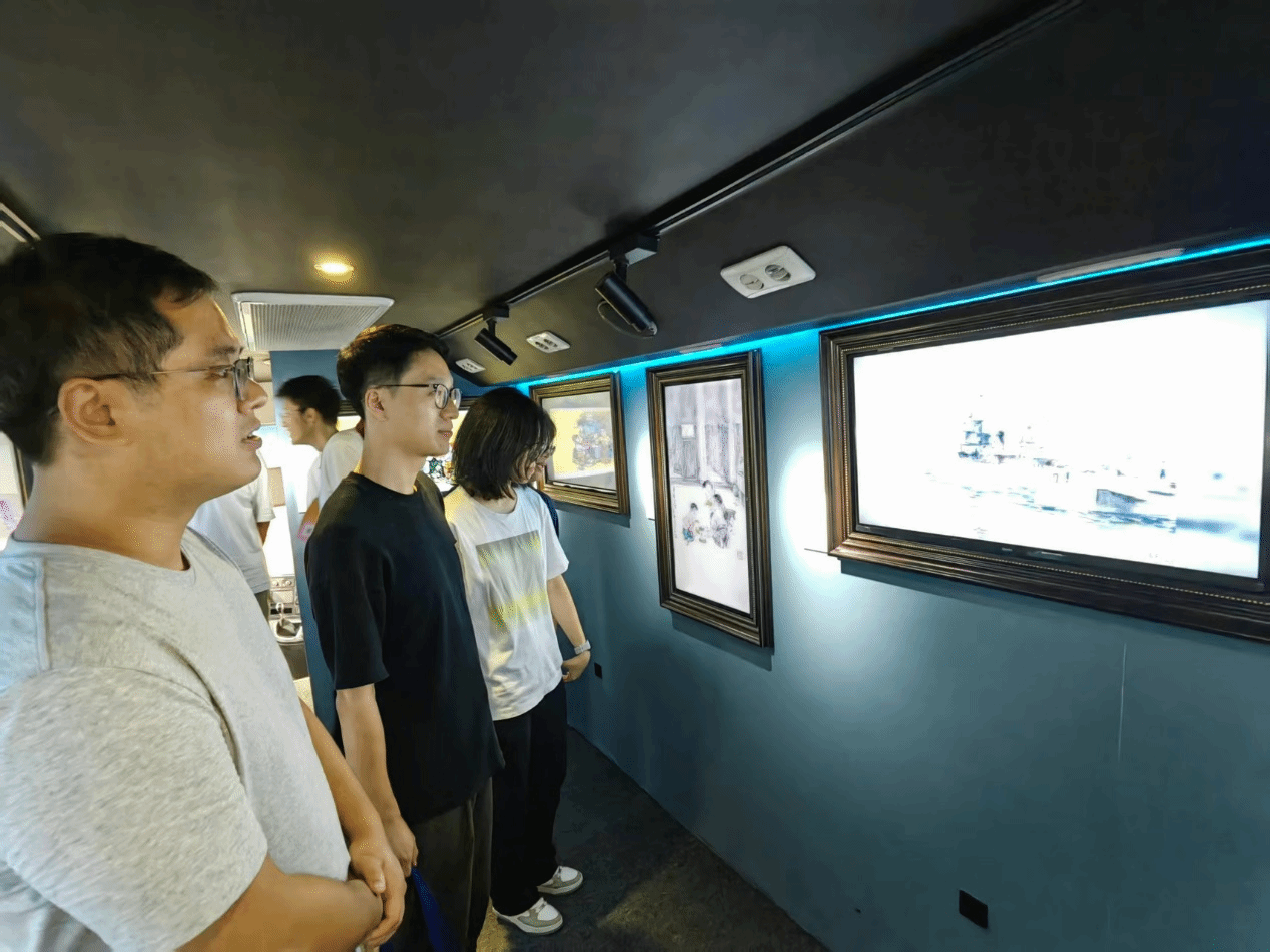2025年10月13日,地生支部参加“奋斗移动美术馆·家园主题大巴巡展”主题党日活动。支部全体党员共同走进这辆“流动美术馆”,在沉浸式体验中感受家国情怀,砥砺奋斗精神。 从“绿水青山”到“智慧城市”,从“乡村振兴”到“大国工程”,一幅幅精美影像、一幕幕动态场景,把新时代十年党和国家取得的历史性成就、发生的历史性变革,浓缩成可触、可视、可感的“幸福家园画卷”。党员教师们驻足观看,通过触屏互动点亮自己熟悉的家乡,直观感受人民对美好生活的向往正在照进现实。